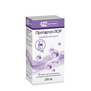 Протаргол-Лор таблетки для приготовления раствора для местного применения 200мг №2 в комплекте с флаконом и насадкой-распылителем