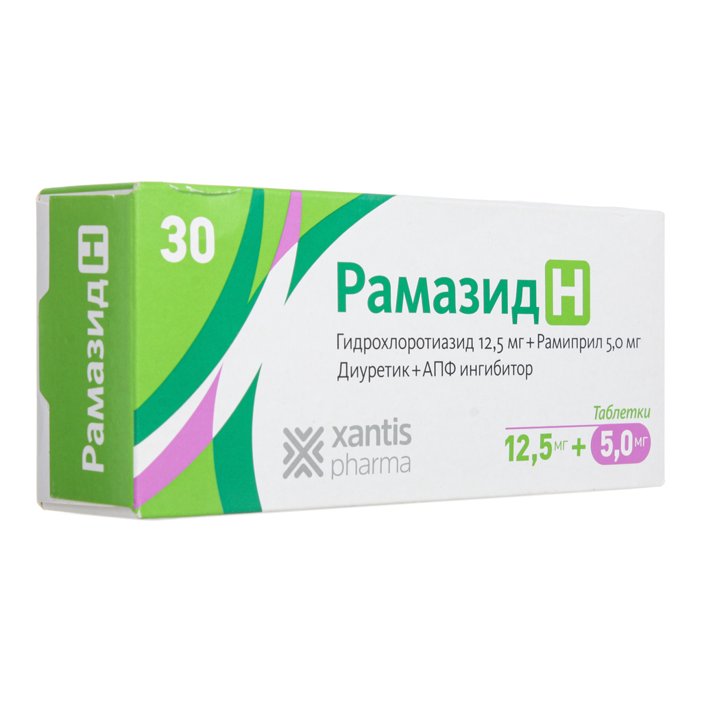 Активное вещество: рамиприл/гидрохлоротиазид — 2,5/12,5 мг 5/25 мг.