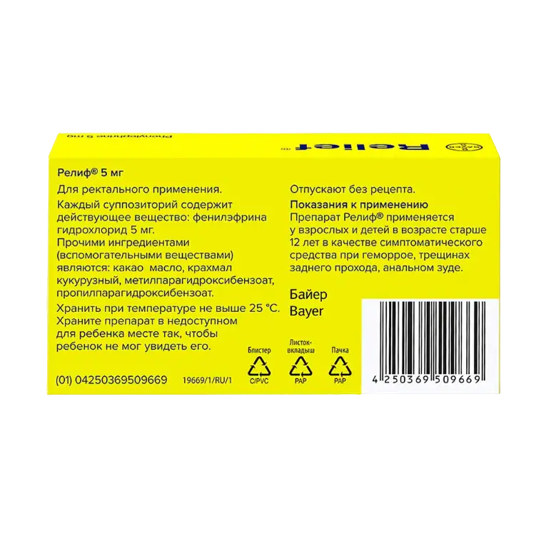 Релиф суппозитории ректальные №10