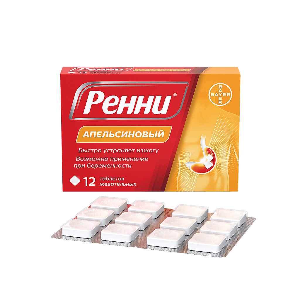 Ренни таблетки жевательные апельсиновые 680мг+80мг №12