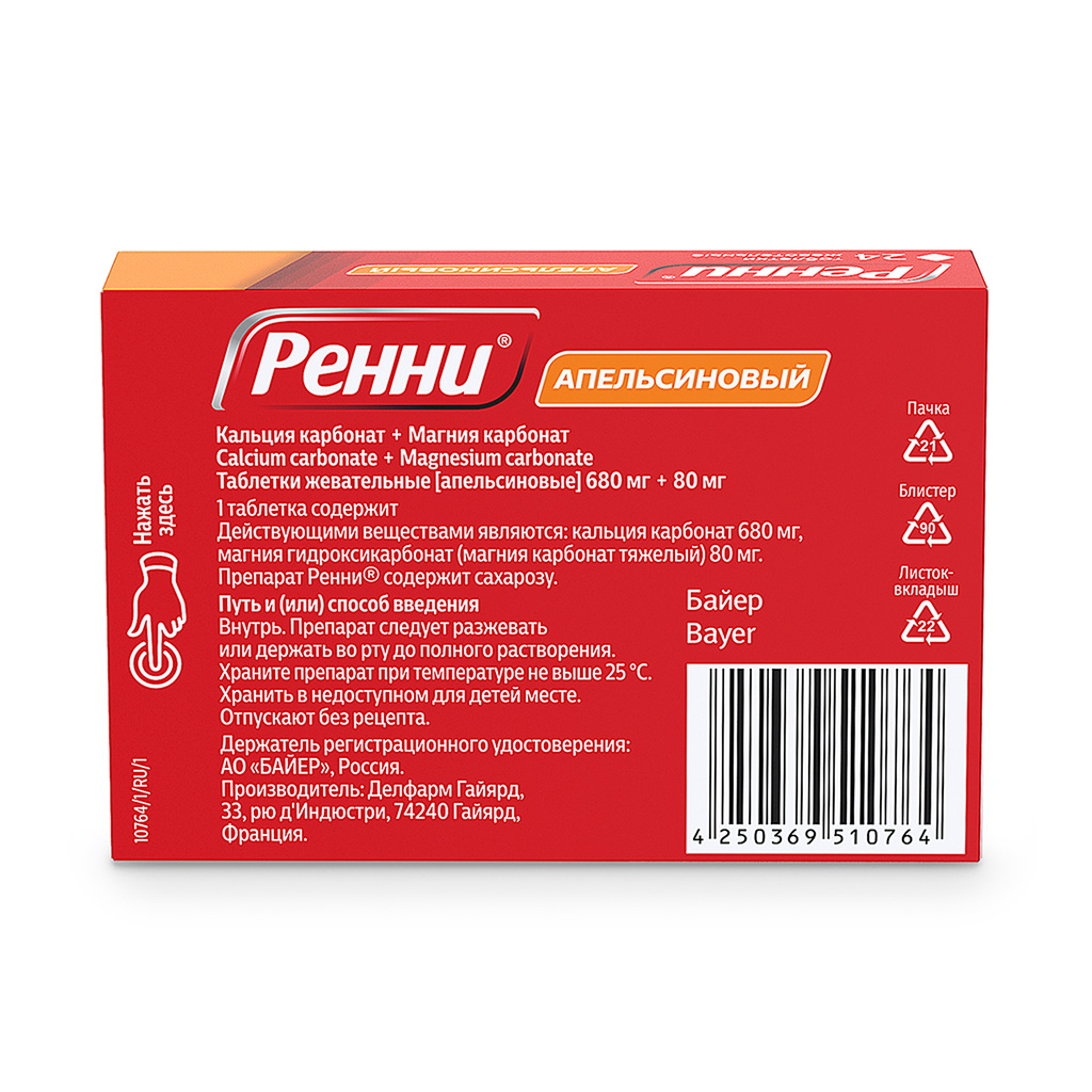 Ренни таблетки жевательные апельсиновые 680мг+80мг №24