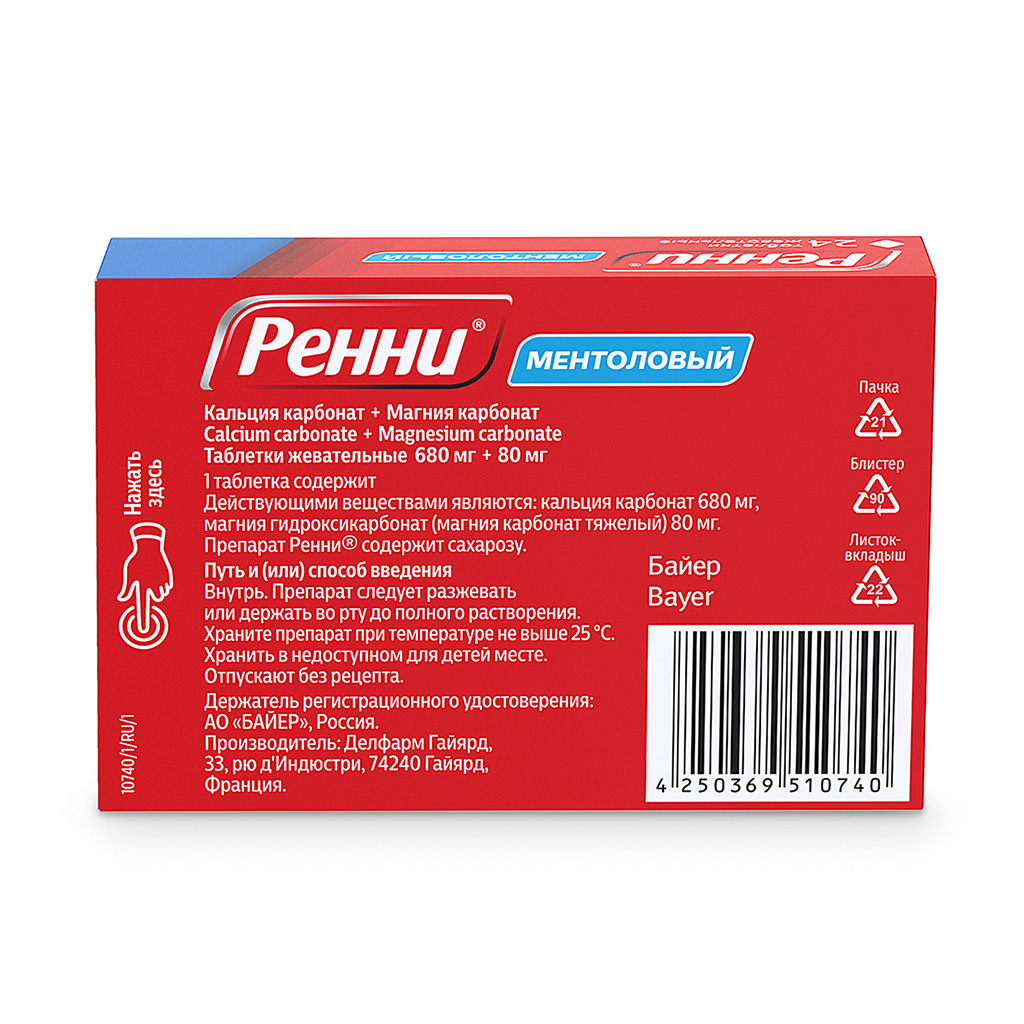 Ренни таблетки жевательные ментоловые 680мг+80мг №24