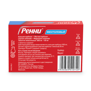 Без указания врача не следует превышать максимальную суточную дозу кальция карбоната, равную 8 г (соответствует 11 таблеткам препарата Ренни®), или применять препарат в максимальной суточной дозе непрерывно более 2 недель.