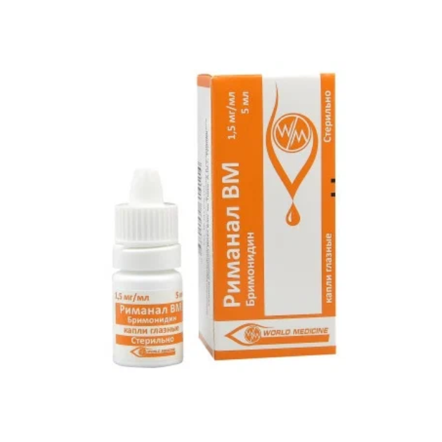 Риманал ВМ — селективный α2-адреномиметик. Максимальное снижение внутриглазного давления (ВГД) достигается через 2 часа. Гипотензивное действие бримонидина обеспечивается за счёт снижения образования и повышения оттока внутриглазной жидкости по увеосклеральному пути.