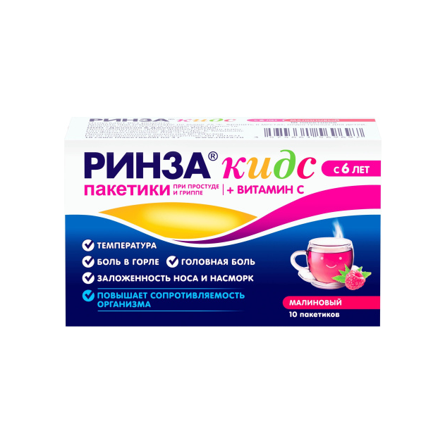Ринза кидс порошок для приготовления раствора для приёма внутрь малиновый саше 3г №10