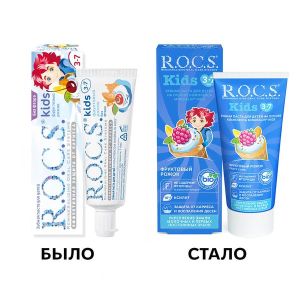 Рокс Kids 3-7 зубная паста для детей Фруктовый рожок туба 45г