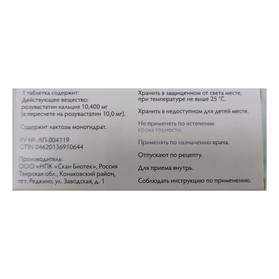 Действующее вещество: ;розувастатин кальция 5,200 мг/10,400 мг/20,800 мг (в пересчете на розувастатин 5,0 мг/10,0 мг/20,0 мг).