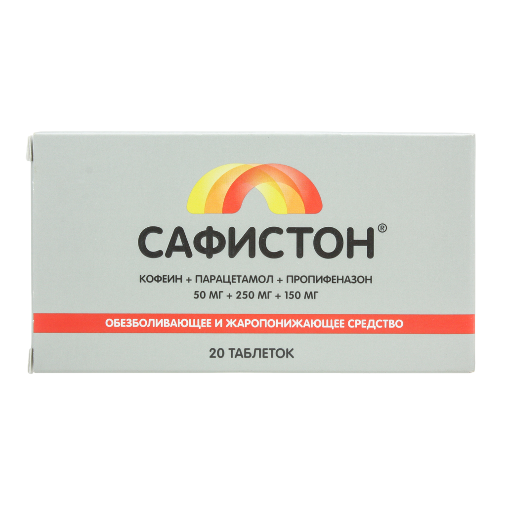 Эффективность препарата может снизиться при одновременном применении с холистирамином, холинолитиками, антидепрессантами, щелочными веществами. При одновременном применении Сафистона с барбитуратами, противосудорожными препаратами, этанолом значительно повышается гепатотоксичное действие. Метоклопрамид ускоряет всасывание парацетамола. Под воздействием парацетамола период полувыведения хлорафеникола увеличивается в 5 раз. Одновременное применение парацетамола в высоких дозах повышает эффект антикоагулянтов. Миелотоксичные средства усиливают проявления гематотоксичности парацетамола.