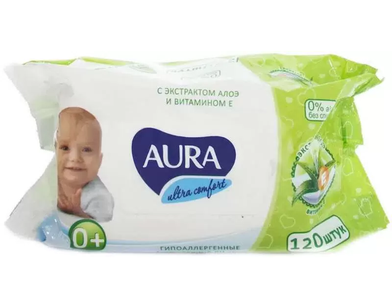Купить Салфетки влажн. аура ultra comfort для детей гипоал. с экст. алоэ и вит. е №120 (без крышки) (арт05351) по низкой цене