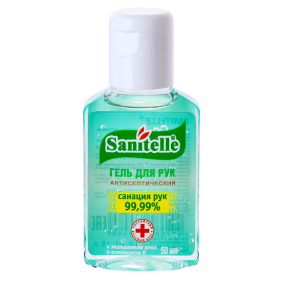 Антисептический гель для рук на основе этилового спирта Sanitelle® уничтожает 99,99% наиболее распространенных болезнетворных бактерий, грибов и вирусов.