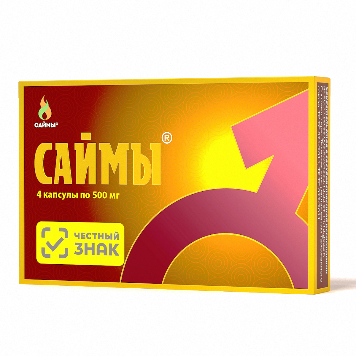 Биологически активная добавка к пище САЙМЫ - источник гинсенозидов, иридоидов (асперулозидовой и деацетиласперулозидовой кислот), содержащая салидрозид. Рекомендуется при снижении половой активности у взрослых мужчин (18+).