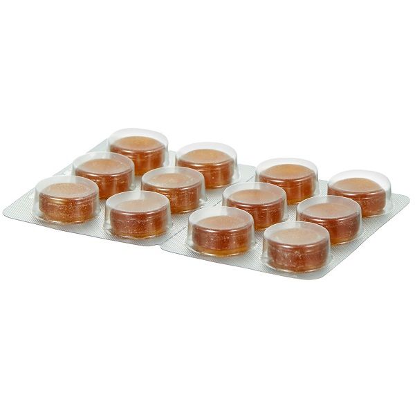 Содержание в 3-6 пастилок (суточный прием): ментол 2,7-5,4 мг, флавоноиды (в пересчете на рутин)-2,4-4,8 мг.