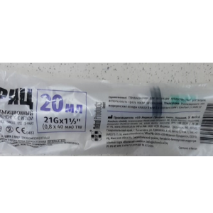 Шприц 20 мл Luer трёхкомпонентный с иглой 0,8 x 40 - 21G SFM