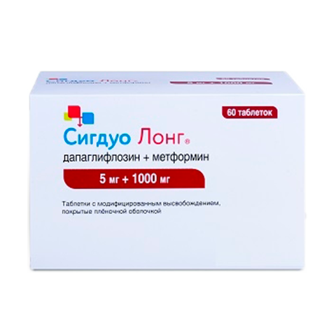 Сигдуо лонг таблетки с модифицированным высвобождением покрытые плёночной оболочкой 5мг+1000мг №60
