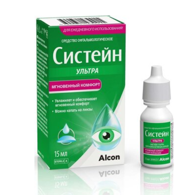 - СИСТЕЙН® УЛЬТРА средство офтальмологическое обеспечивает временное облегчение симптомов синдрома «сухого глаза», таких как чувство жжения и раздражение.
