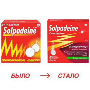 Препарат содержит натрия гидрокарбонат, способствующий всасыванию препарата. Согласно данным клинических исследований, всасывание парацетамола и кофеина проходит быстрее в течение первых 60 мин (снижение Tmax и увеличение AUC0-10ч) по сравнению с препаратом Солпадеин Актив, таблетки, покрытые пленочной оболочкой.