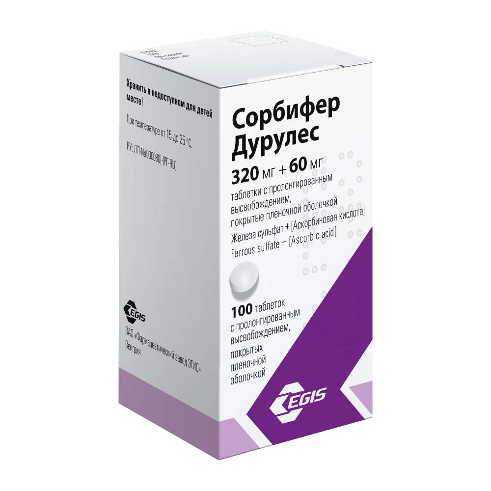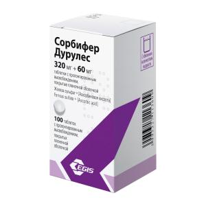 Сорбифер Дурулес таблетки с пролонгированным высвобождением покрытые пленочночной оболочкой 320мг+60мг №100