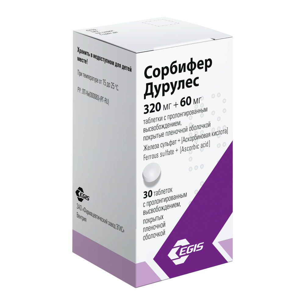 Сорбифер Дурулес таблетки с пролонгированным высвобождением покрытые пленочночной оболочкой 320мг+60мг №30