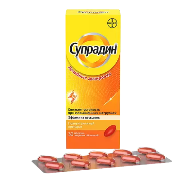При указанных состояниях редко наблюдается недостаток только одного из витаминов. Кроме того, нарушается поступление наиболее распространённых минералов и редких элементов. Препарат СУПРАДИН® создан как полный мультивитаминный комплекс, способствующий предупреждению общих авитаминозов и позволяющий проводить их лечение.