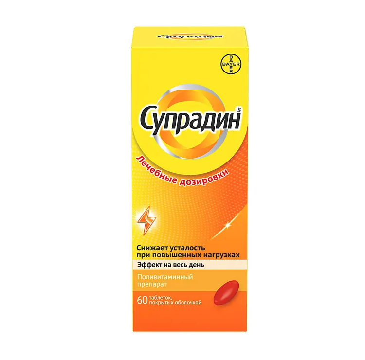 При указанных состояниях редко наблюдается недостаток только одного из витаминов. Кроме того, нарушается поступление наиболее распространённых минералов и редких элементов. Препарат СУПРАДИН® создан как полный мультивитаминный комплекс, способствующий предупреждению общих авитаминозов и позволяющий проводить их лечение.