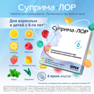 Препарат Суприма-ЛОР оказывает антисептическое действие, активен в отношении грамположительных и грамотрицательных микроорганизмов, обладает антимикотическим действием.