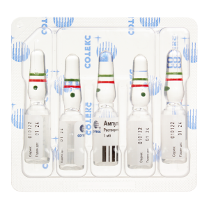 По 2 мл в ампулы светозащитного стекла с цветным кольцом разлома или с цветной точкой и насечкой. На ампулы дополнительно наносят одно, два или три цветных кольца и/или двухмерный штрих-код, и/или буквенно-цифровую кодировку или без дополнительных цветных колец, двухмерного штрих-кода, буквенно-цифровой кодировки.