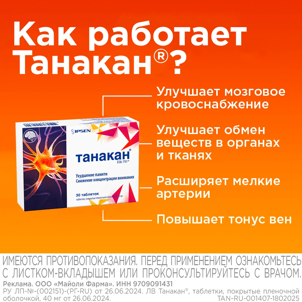 Танакан таблетки покрытые плёночной оболочкой 40мг №30