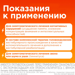Стандартизованный и титрованный препарат растительного происхождения действие которого обусловлено влиянием на процессы обмена веществ в клетках, реологические свойства крови, а также вазомоторные реакции кровеносных сосудов.