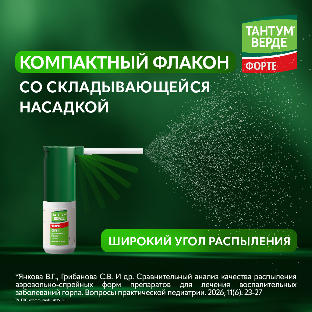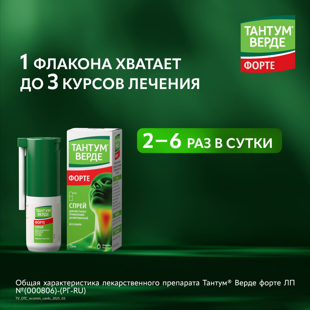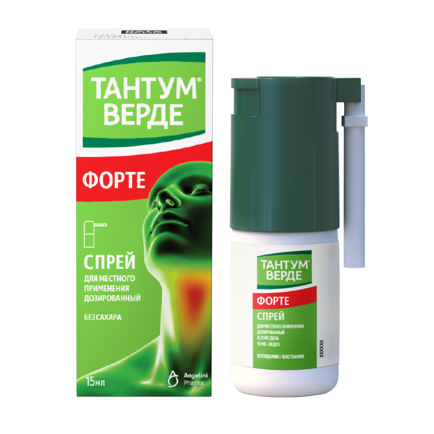 Тантум Верде форте спрей для местного применения дозированный 0,51мг/доза флакон 15мл