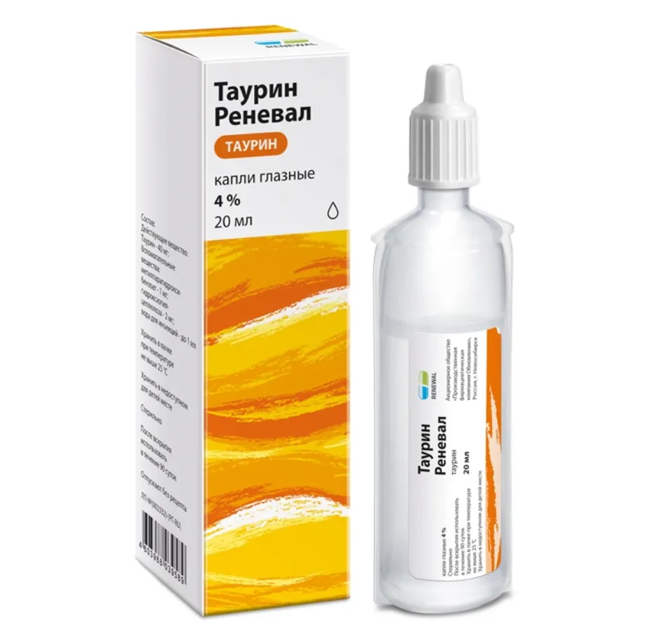 Таурин Реневал капли глазные 4% тюбик-капельница 20мл