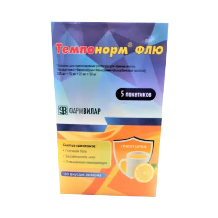 Препарат Темпонорм® ФЛЮ содержит около 20 г сахарозы на пакетик. Это должно быть принято во внимание у пациентов с сахарным диабетом. Пациентам с такими редкими наследственными проблемами, как непереносимость фруктозы, глюкозо-галактозной мальабсорбцией или недостаточностью сахаразы/изомальтазы, не следует принимать препарат Темпонорм® ФЛЮ.