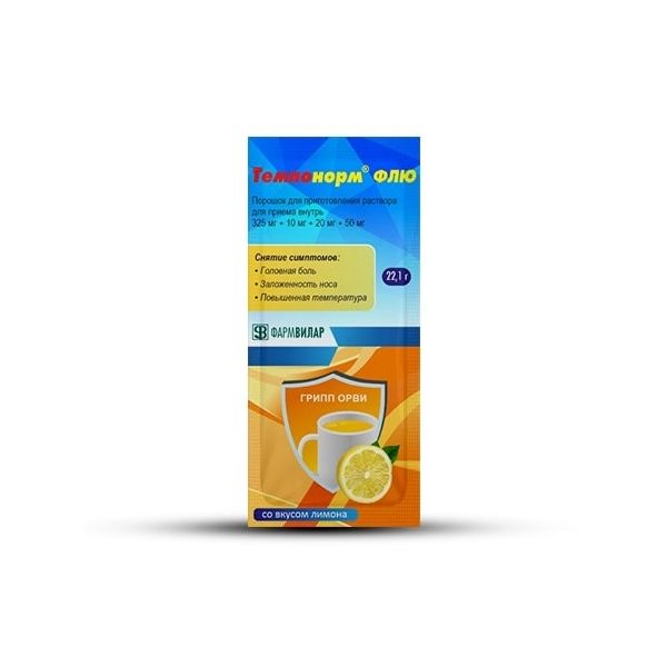 Темпонорм Флю порошок для приготовления раствора для приёма внутрь 325мг+10мг+20мг+50мг со вкусом лимона пакетики №5