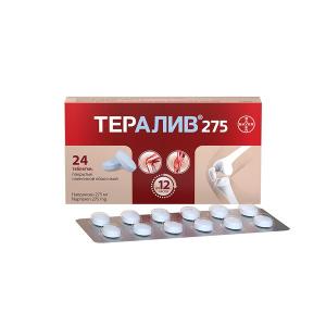 - Препарат Тералив 275 применяется для симптоматической терапии (для уменьшения боли, воспаления и снижения повышенной температуры тела) и на прогрессирование основного заболевания не влияет.