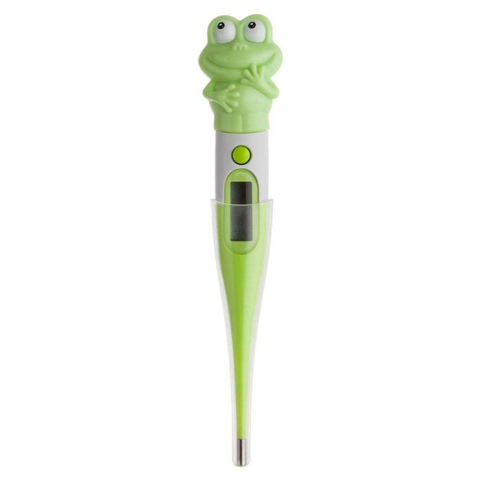Электронный термометр CS Medica KIDS, CS-82-F, - высокоточный прибор для измерения тела ректальным, аксиллярным и оральным способами. Термометр относится к категории оборудования домашнего назначения и может быть использован для измерения температуры тела с первых дней жизни малыша.Тревожная сигнализация - при температуре свыше 37,7 0C прибор издает звук, который оповещает о повышенной температуре малыша.По желанию пользователя, результаты измерений могут отображаться на экране как в формате градусов Цельсия, так и по Фаренгейту.Управление электронным термометром CS Medica KIDS CS-82-F простое и осуществляется единственной кнопкой, расположенной рядом с дисплеем. После окончания процедуры отключать прибор нет необходимости, так как он оснащен функцией автоматического отключения. Такая организация работы позволяет экономить заряд батареи и максимально долго продлить срок службы оборудования.Термометр CS Medica KIDS (CS-82-F) представляет собой идеальный вариант электронного домашнего термометра для детей, в виде забавного лягушонка. В комплект поставки оборудования входит специальный чехол, в котором удобно и надежно хранить устройство, так как он защищает моноблок от повреждений даже при падении. Термометр работает от одной батарейки, он экономичен и имеет продуманную конструкцию корпуса, за счет чего замена элемента питания производится быстро и самостоятельно.Интервал подачи звукового сигнала:Ректальное измерение: приблизительно 60 секундОральное измерение: приблизительно 90 секундИзмерение в подмышечной впадине: 120 секунд