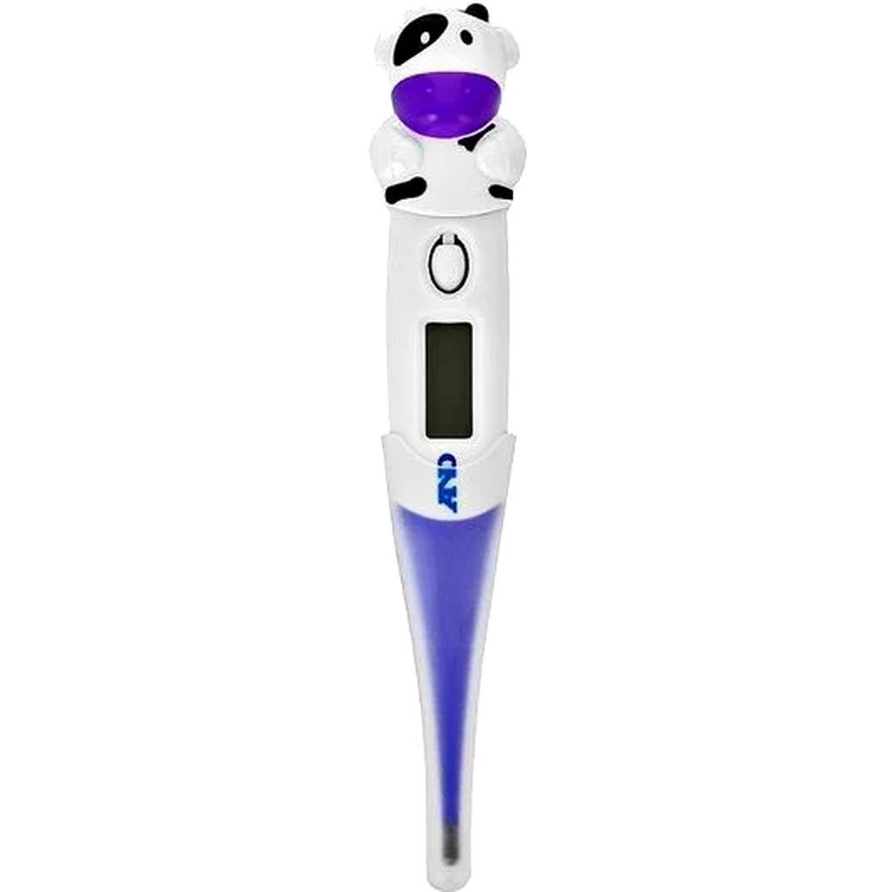 Электронный термометр (или градусник) AND DT-624, Коровка, предназначен для измерения температуры тела человека тремя способами: орально, в подмышечной впадине (аксиллярно) или ректально. Время измерения около 60 сек. Прибор отличает яркий и необычный дизайн, который выполнен в виде забавной коровки, наверняка, понравится детям.
