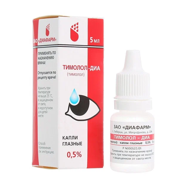 По 5 или 10 мл Тимолола-ДИА капли глазные 0,25 % или 0,5% во флаконы стеклянные, укупоренные пробками резиновыми и обкатанные алюминиевыми колпачками, либо по 5 или 10 мл во флаконы полиэтиленовые или полипропиленовые, герметизированные капельницами и навинчивающимися крышками.