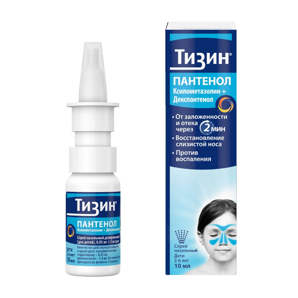Тизин Пантенол спрей назальный дозированный для детей 0,05мг+5мг/доза флакон 10мл