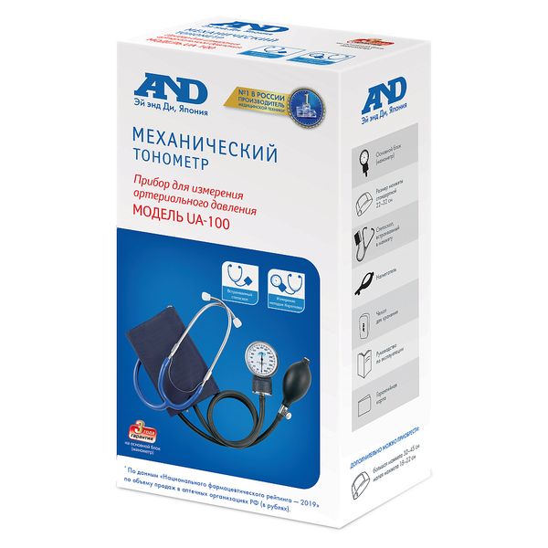 Механический прибор для измерения артериального давления AND UA-100 со встроенным стетоскопом обеспечивает простое и точное измерение артериального давления, используя метод Короткова.