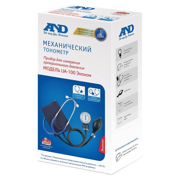 ПРИБОР ДЛЯ ИЗМЕРЕНИЯ АРТЕРИАЛЬНОГО ДАВЛЕНИЯ UA-100 ЭКОНОМ - прибор для измерения артериального давления аускультативным методом (метод Короткова). Механический прибор для измерения артериального давления AND UA-100 со встроенным стетоскопом обеспечивает простое и точное измерение артериального давления. Страна происхождения: Япония. Страна производства: Китай.
