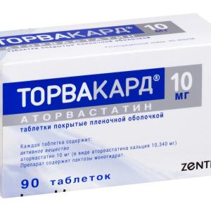 Торвакард таблетки покрытые плёночной оболочкой 10мг №90
