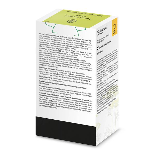 Настой плодов укропа пахучего оказывает спазмолитическое, повышающее секрецию пищеварительных желёз, ветрогонное и отхаркивающее действие, а также способствует выработке молока у кормящих матерей.