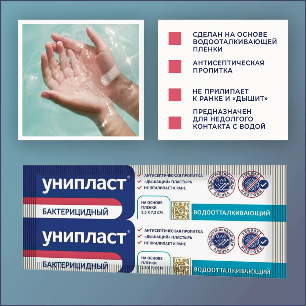 Лейкопластырь «Унипласт» бактерицидный влагостойкий обеспечивает защиту от проникновения влаги.