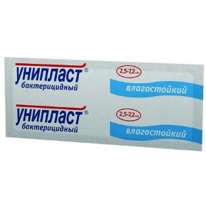 Унипласт лейкопластырь бактерицидный влагостойкий 2,5x7,2см №1