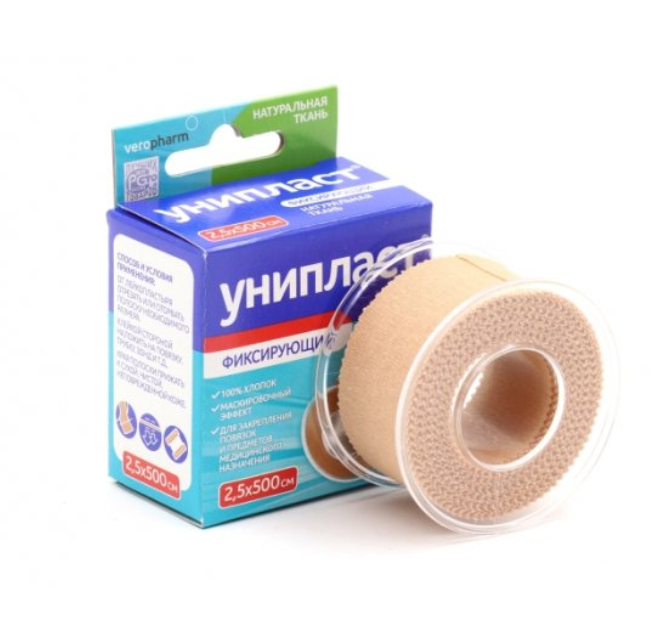 Лейкопластырь "Унипласт Фиксирующий" на основе натуральной ткани - современный гипоаллергенный фиксирующий лейкопластырь, телесного цвета,с высокой воздухо- и паропроницаемостью, прочный - можно использовать для фиксации тяжелых предметов медицинского назначения и повязок, не заметен на коже, легко рвется без использования ножниц за счет краевых зубцов, безболезненно удаляется.