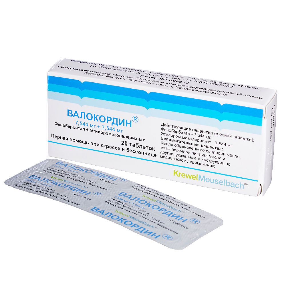 Валокордин таблетки 7.544мг+7.544мг №20