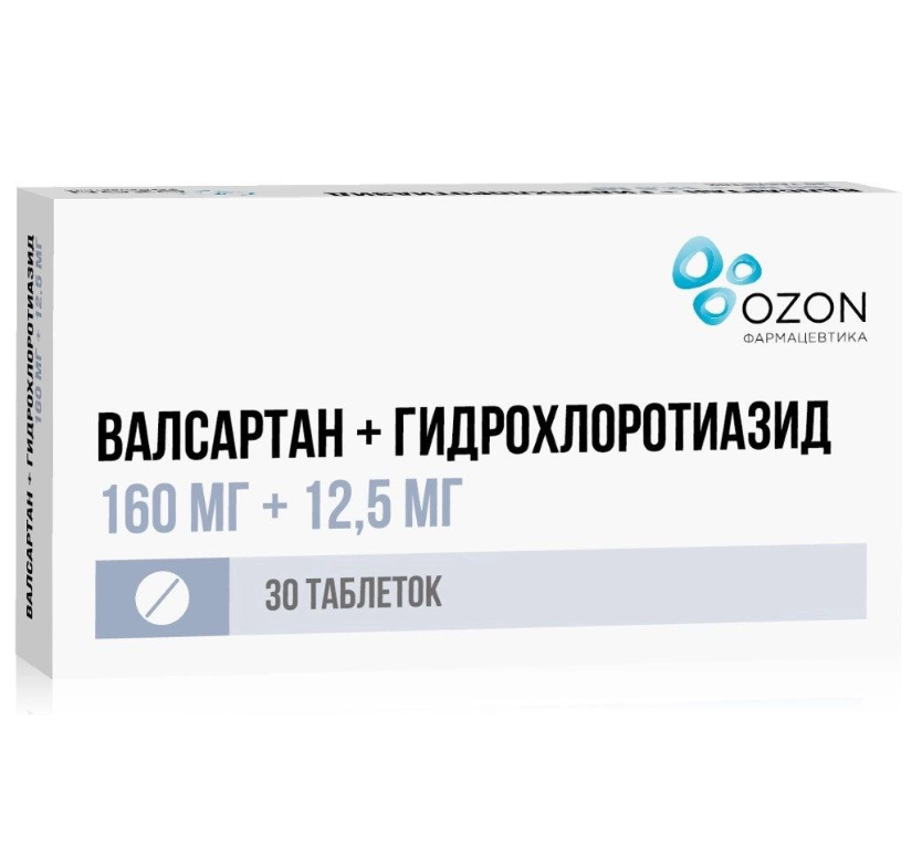 Действующие вещества: валсартан — 160,00 мг гидрохлоротиазид — 12,50 мг