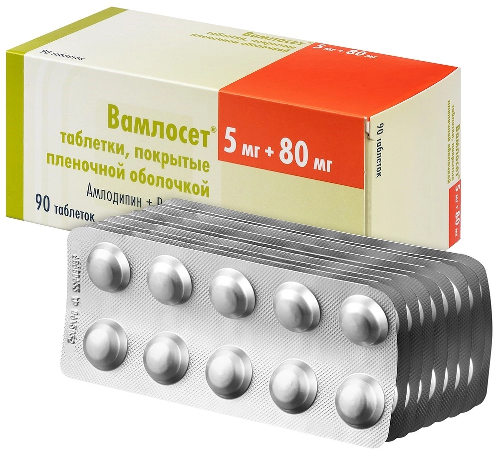 Вамлосет Таблетки покрытые пленочной оболочкой 5 мг+80 мг №90