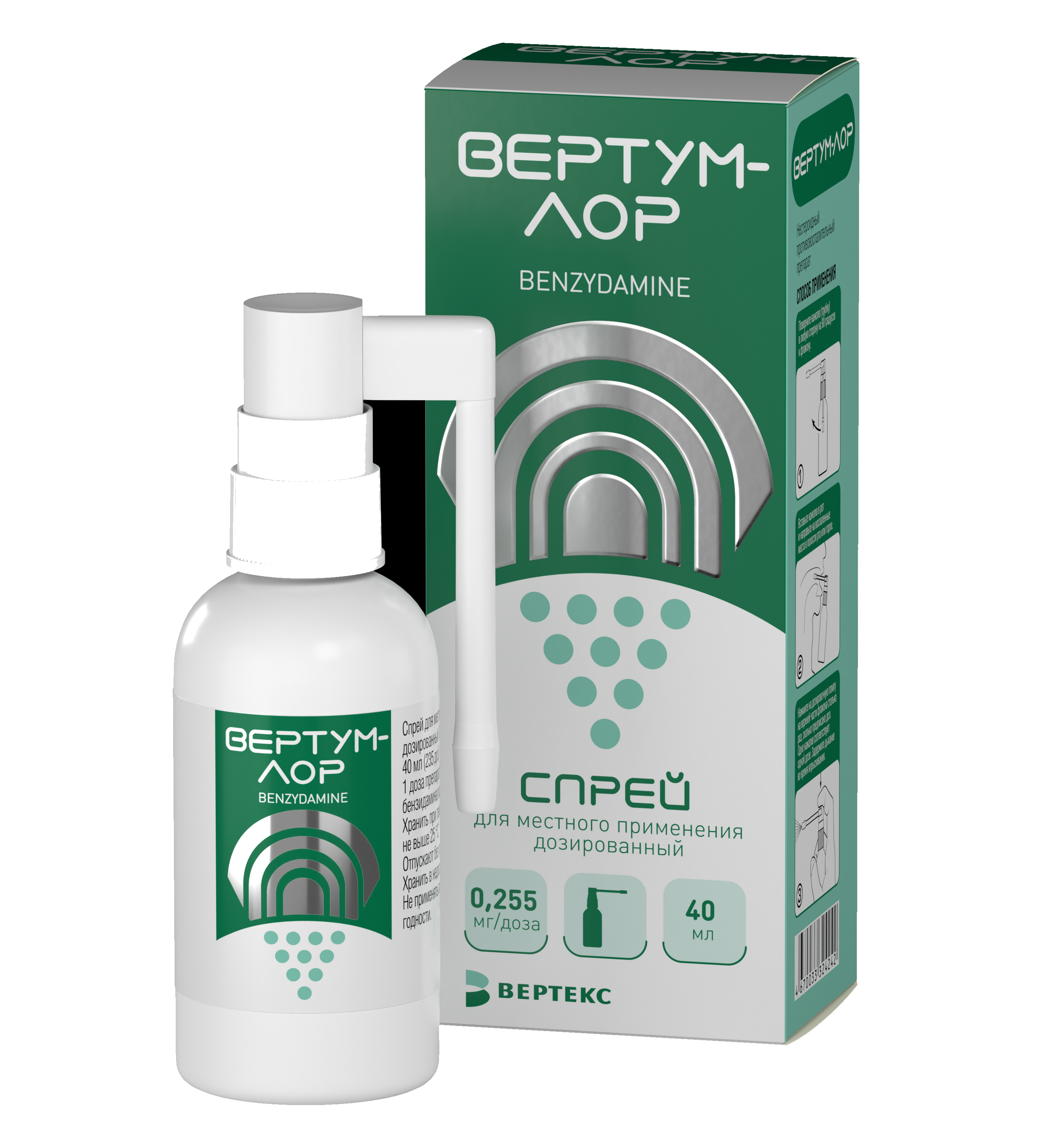 Вертум-Лор спрей для местного применения дозированный 0,255мг/доза флакон с распылительной насадкой 40мл/235доз/