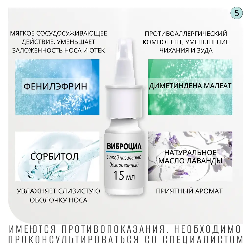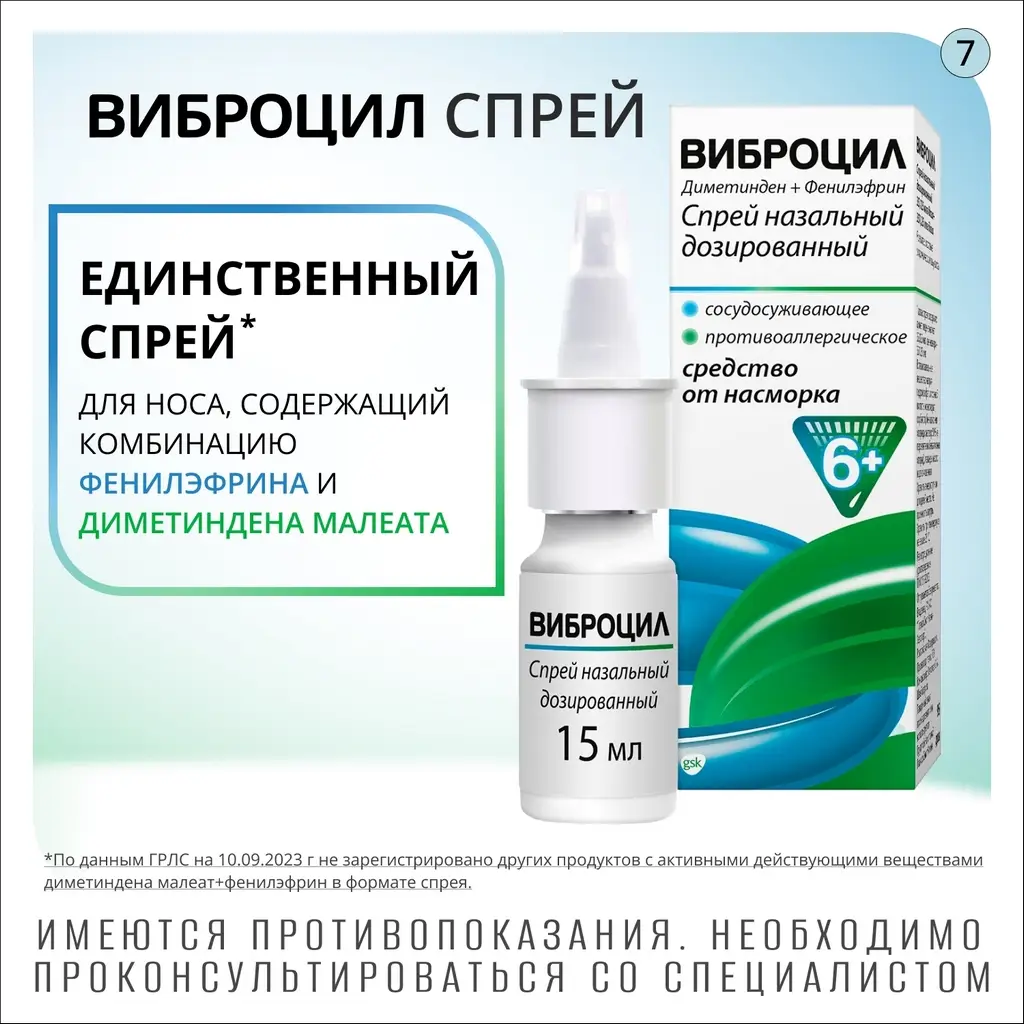 Виброцил спрей назальный дозированный 35,125мкг/доза+351,25мкг/доза 15мл