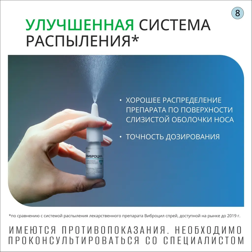 Как и в случае применения любых местных сосудосуживающих средств, следует соблюдать осторожность при назначении препарата Виброцил® пациентам с выраженными реакциями на симпатомиметики, проявляющимися в виде бессонницы, головокружения, тремора, сердечной аритмии или повышения артериального давления.